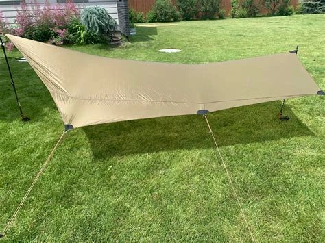 Weather protection but still allows you to feel fully “outdoors.” In addition, a tarp can be used to create a breezy patio over your tent’s entrance, or as a kitchen away from your campsite for greater safety in bear country. Tarp use is nearly limitless, and they can be pitched with trekking poles, paddles or branches, and can be suspended from trees, as well.