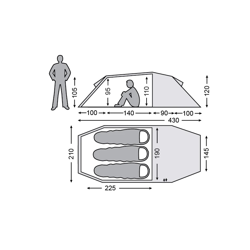 - Flysheet Size : 430 x 210 x 120 cm